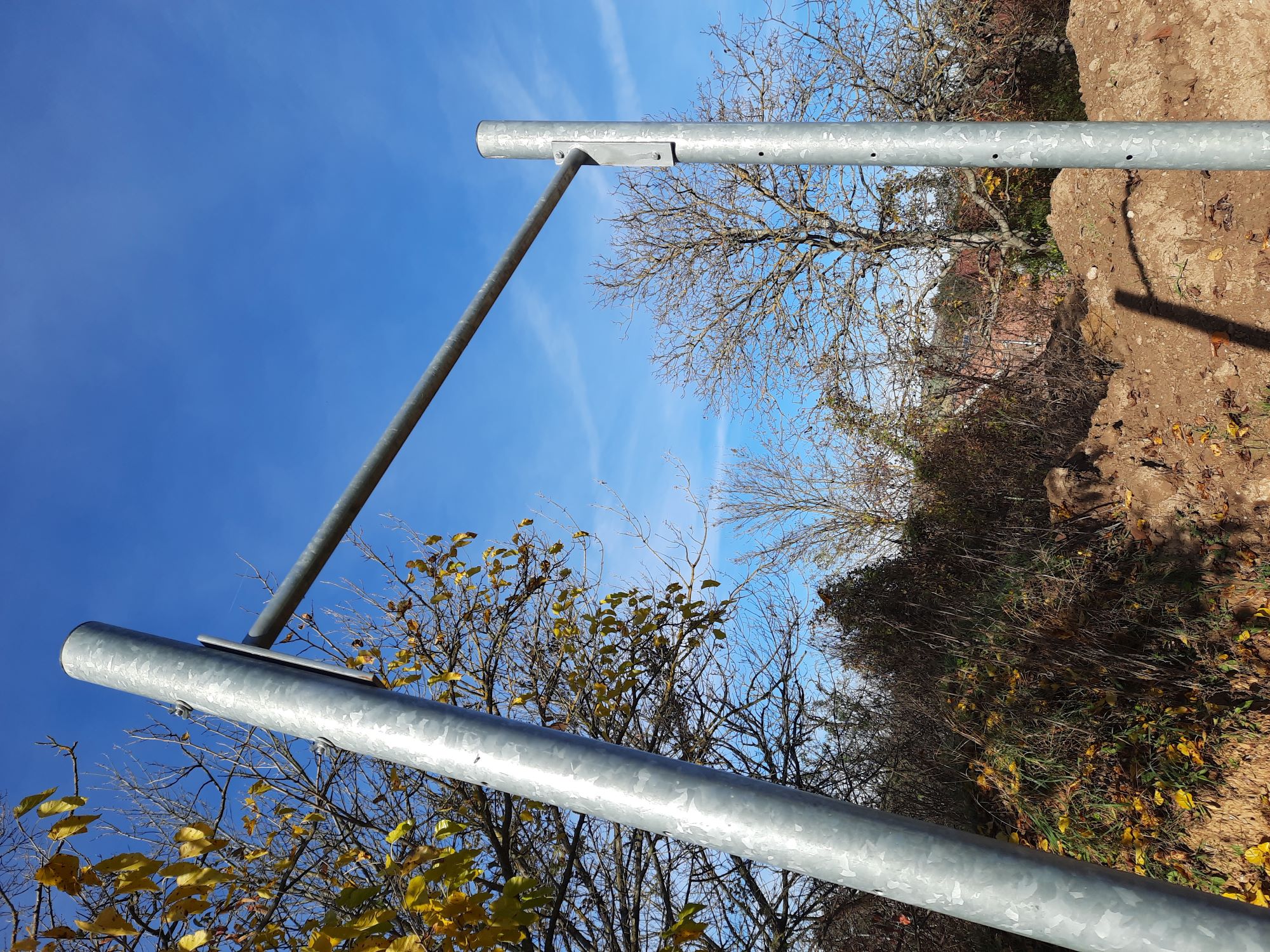 Bausatz (optional auch mit(Beton-Fundament und Montage) Massive (!) Trainingsstange freistehend; Leichtathletik/Calisthenics/Klimmzug/(optional Dipsbarren) im 75cm tiefen Betonfundament (Stahlrohr 3", Höhe 260cm, Abstand der Steher 130cm, Querstange in der Höhe verstellbar), Querstangen austauschbar und in 3 verschiedenen Dicken möglich (3/4" , 1- 1/2", 2") für verschiedene Arten von Training. Sehr robust, bei ausgeführtem Betonfundament laut Anleitung. Es können auch Übungen wie die Riesenfelge oder Kippaufschwung oder Kipping Pullups (Übung bekannt aus Crossfit) ausgeführt werden. Für Ihren Garten, und unverwüstlich sowie wetterfest!