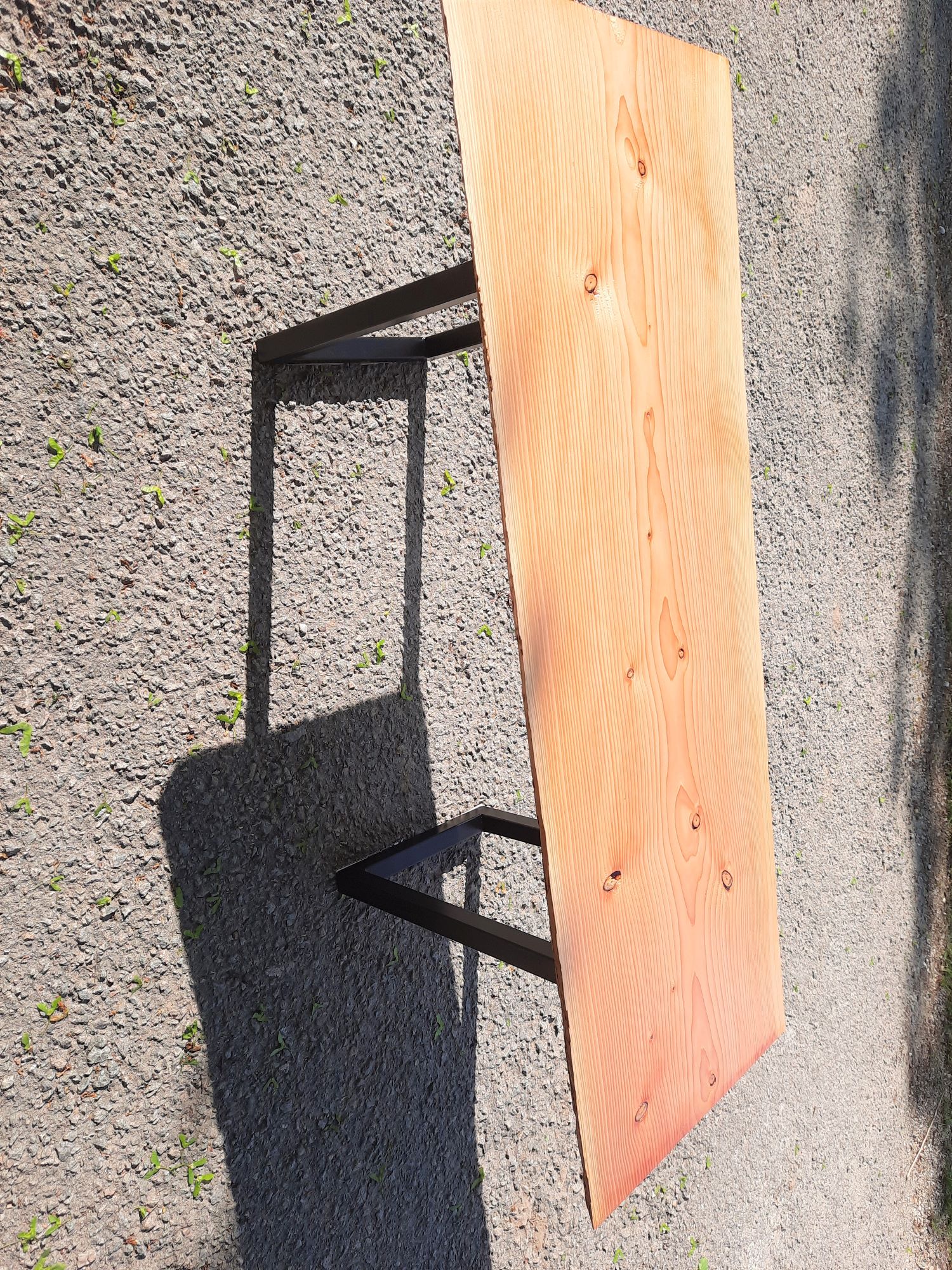 Couch Tisch, Wohnzimmer Tisch. aus Douglasie 30mm lxb ca 1200/1100/900 x 450/400 mm (exakte Breite je nach Dicke des Baumstammes!) Mit massivem Metall Untergestell - sehr robust. Höhe 48cm.